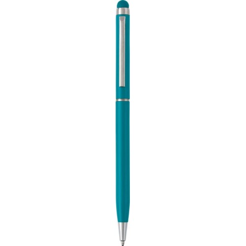 Elegante esferográfica com ponteiro táctil, corpo e detalhes em aluminio. Escrita azul. Colors : verde claro Materials : Alumínio/Metal/Borracha Certificates : Safety Data Sheet (SDS) (nr 27), Cadmium (nr 2), Nickel (nr 3), PAHs (nr 4), Phthalates (nr 13), EN71-3 (nr 1), BSCI (nr 195).