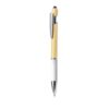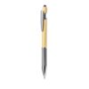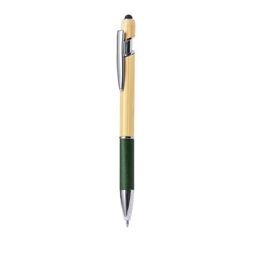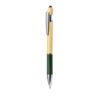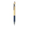 Esferográfica ponteiro com corpo em bambu e papel reciclado. Corpo em bambu macio com pega feita em cartão reciclado com textura e numa variedade de cores. Na parte superior tem um ponteiro preto. Clip metálico e acessórios em cromado. De mecanismo pulsador e tinta azul.Fabricada com elementos vegetais para assim promover a utilização de matérias-primas naturais e reduzir as emissões poluentes.Composition : Bambu/ Papel.