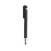 Caneta com ponteiro táctil, multifuncional com mecanismo de botão de pressão, em varias cores e com um clipe de dupla função, especialmente projetado para servir como suporte para telemóvel e também como limpador de ecran. Com corpo em acabamento metálico, especialmente desenhado para impressão em tampografía. Ecrita a preto.Escrita Preta. Limpa Ecrã Incluído