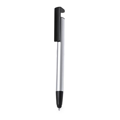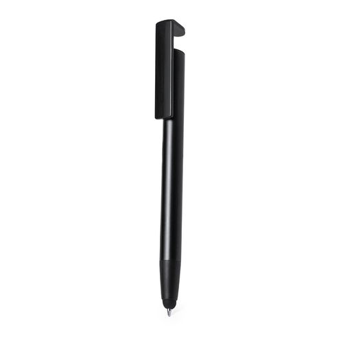 Esferográfica ponteiro com mecanismo pulsador, fabricada em alumínio resistente. Com suporte para dispositivo móvel integrado num clip e corpo macio numa vasta gama de cores metalizadas. Em tinta azul e apresentada individualmente numa bolsa reciclada.Composition : Alumínio.
