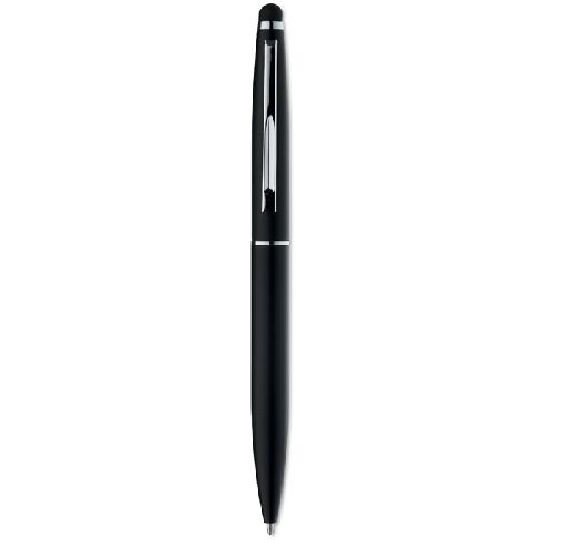 Esferográfica twist em alumínio com clip cromado brilhante e ponta suave. Tinta azul.