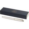 Altamente profissional e de confiança. Um parceiro ideal com potencial ilimitado, a “Parker IM” é ao mesmo tempo inteligente, sofisticada e tradicional. Com um bico de aço inoxidável durável e acabamentos que refletem o legado da”Parker”, cada detalhe é aprimorado para uma experiência de escrita sempre confiável. Inclui uma caixa de presente”Parker”. Entregue com um cartucho de recarga. Design exclusivo.Metal Green Points Total :8 – CO2 foot print : 0,12Gravação laser – tampa – max color : 1 – 40 x 5 mm.