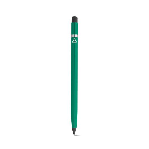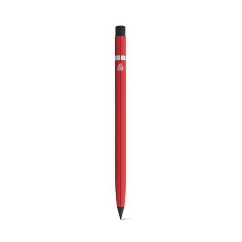 Caneta sem tinta com corpo em 100% de alumínio reciclado. Apta para um uso prolongado sem a necessidade de afiar. Na parte superior contém uma borracha que apaga com facilidade o que está escrito. ø8 x 150 mmMaterials : 100% alumínio reciclado, 100% PE recicladoPacking : Polybag – Repacking : PolybagDefault customisation : Esferográfica – Corpo lateral (Tampografia – 50 x 4).