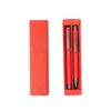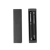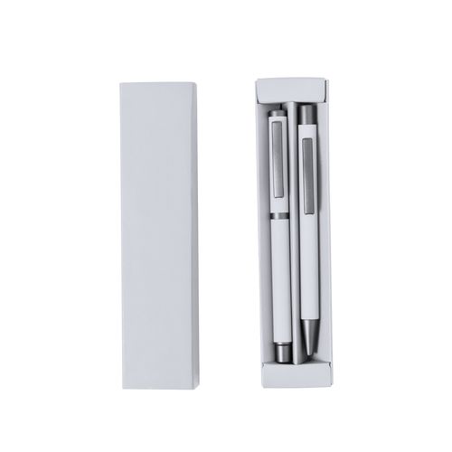 Elegante set de esferográfica e roller. Esferográfica com mecanismo pulsador e roller com tampa, ambos com clip metálico, carga jumbo e tinta azul. Corpo em variadas cores sólidas com acabamento aborrachado e detalhes metálicos em cinzento escuro. Apresentado numa caixa de variadas cores a condizer com compartimentos interiores separados.Esferográfica e Roller. Carga JumboComposition : Alumínio.