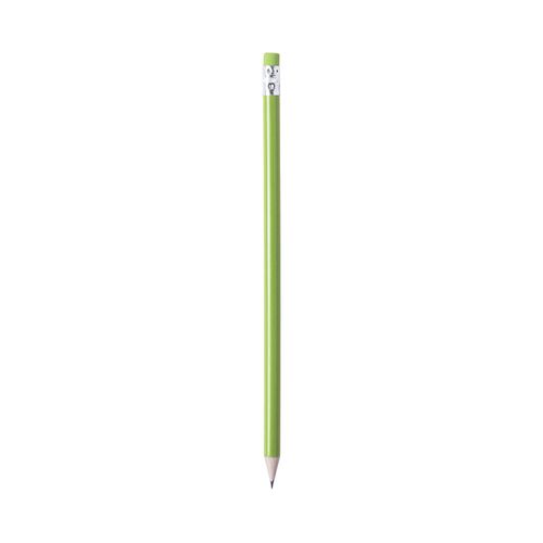 Lápis de madeira com acabamento brilhante. Com coropo redondo e borracha a condizer. Disponível numa vasta gama de cores. Mina preta e ponta afiada.Composition : Madeira.
