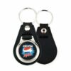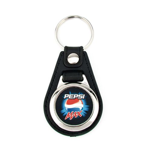 Porta-chaves MD-25 em metal sem moeda mas com proteção de pele em volta. Com 1 face (25mm) para inserção de papel e tampa em acrilico p/fechar