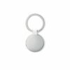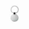 Porta chaves de metal com forma redonda, acabamento niquelado brilhante.