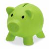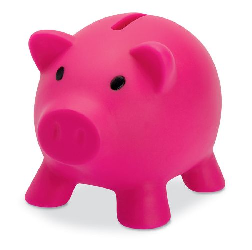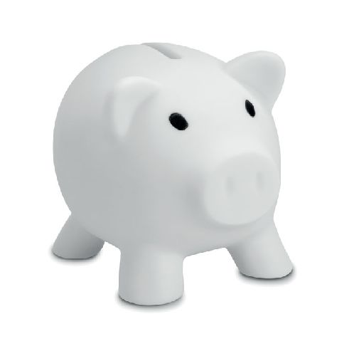 Porquinho mealheiro em PVC com tampa de ABS na parte inferior.
