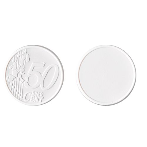 Ficha € 0,50 para carrinho, plástico PS. Muito útil para compras de supermercado, este brinde tem uma face que pode personalizar com o seu logo.