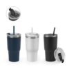 Copo de viagem compacto e de fácil utilização para as suas viagens e atividades ao ar livre. Composto em aço inoxidável (91% rSS) tem parede dupla isolada a vácuo e um acabamento mate. Este copo pode ser utilizado de duas maneiras: através da sua abertura para palhinha ou do orifício para utilização direta (pode ser tapado). Capacidade até 600 mL. Fornecido em caixa de oferta em papel kraft. ø86 x 168 mm (sem palhinha) | Palhinha: 205 mm Properties : Our nature Materials : – Packing : Caixa de oferta, Polybag bolha – Repacking : Caixa de oferta, Plástico bolha Default customisation : Copo 1 – Frente superior (Tampografia – 20 x 40)