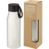 Garrafa de cobre isolada a vácuo em aço inoxidável com um design clássico e elegante. Possui uma correia de couro PU e detalhe na tampa. Isto torna-a ideal para a gravação laser, que irá destacar o logotipo numa cor prata criando um belo efeito visual. Com a sua parede dupla de cobre isolado a vácuo em aço inoxidável 18/8, as bebidas permanecem quentes ou frias durante várias horas. Testado e aprovado sob a Legislação Alemã de Segurança Alimentar (LFGB), e testado para conteúdo de ftalatos de acordo com os regulamentos REACH. Capacidade volumétrica de 500 ml. Apresentada numa caixa de presente branca de cartão.Aço inoxidável, PU Plastic leather Green Points Total :14 – CO2 foot print : 1,893Tampografia – frontal – max color : 4 – 30 x 70 mm.