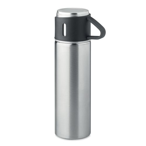 Garrafa de aço inoxidável de parede dupla com tampa hermética. Capacidade: frasco de 420 ml, xícara de 150 ml.Dimensions : Ø6X22.5CM
