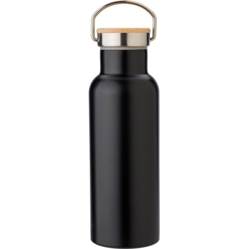Garrafa térmica de parede dupla em aço inoxidável 304 (500 ml), com tampa de rosca em bambu e anel de transporte. À temperatura ambiente, mantém o líquido 3-4 h. frio/quente (aprox.). Colors : prata Materials : Aço Inoxidável 304/Bambu Certificates : Cadmium (nr 2), PAHs (nr 4), Phthalates (nr 13), PCP (nr 39), Extractable Heavy Metals (nr 26), LFGB (nr 56), BSCI (nr 195).