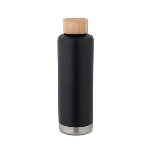 Garrafa em aço inoxidável com parede dupla isolada a vácuo, parede interna revestida de cobre e tampa em bambu com vedante de silicone para proteção extra. A garrafa tem capacidade até 640 mL e mantém as bebidas quentes por 16 h e frias por 48 h. Esta garrafa tem um revestimento em pó que lhe confere mais durabilidade e resistência. Fornecido em caixa oferta de papel kraft. ø72 x 233 mmProperties : Aço inoxidável, Apropriado para comida, Produto amigo do ambiente, Apropriado para bebidas frias, Apropriado para bebidas quentes, Our natureMaterials : Aço inoxidável. BambuCertificates : Food Safety, BPA FreePacking : Polybag, Caixa de oferta – Repacking : Caixa de ofertaDefault customisation : Garrafa desporto – Corpo (Serigrafia – 150 x 140).