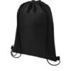 Saco térmico com cordões com fecho de corda em preto. Possui um bolso dianteiro aberto. Capacidade para 12 latas. Resistência até 5 kg de peso.210DPoliéster Green Points Total :10 – CO2 foot print : 0,445Serigrafia – bolso – max color : 1 – 230 x 200 mm.