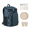 Saco refrigerante ou mochila de piquenique exterior em 2 tons 600D RPET incluindo acessórios de mesa para 2 pessoas. Possui uma faca em aço inoxidável, e uma palhinha em PP.