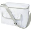 Saco térmico de polyester (420D) rectangular com bolso frontal e com solapa. Colors : branco Materials : PE/Poliéster 420D/PEVA Certificates : AZO Dyes/Amines (nr 18), SVHC’s (nr 22), LFGB (nr 56), BSCI (nr 195).