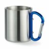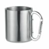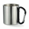 Caneca de aço inoxidável de parede dupla, com alça de mosquetão. Capacidade: 220 ml.