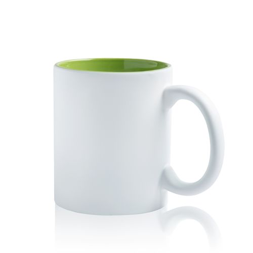 Caneca de cerâmica, Matte Popmug com capacidade para 325ml, exterior branco com toque de borracha e interior de cores variadas. Esta caneca é ótima para personalização a laser, visto que a gravação sai colorida. Não está apta para usar no microondas. 325 ml de capacidade. Caixa branca de oferta.