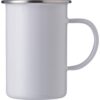 Caneca esmaltada (450 ml) com rebordo em aço inoxidável. Apresentada individualmente numa caixa de cartão castanha. Colors : azul Materials : Aço Inoxidável 304 Certificates : SVHC’s (nr 22), Foodcontact (nr 50), BSCI (nr 195).