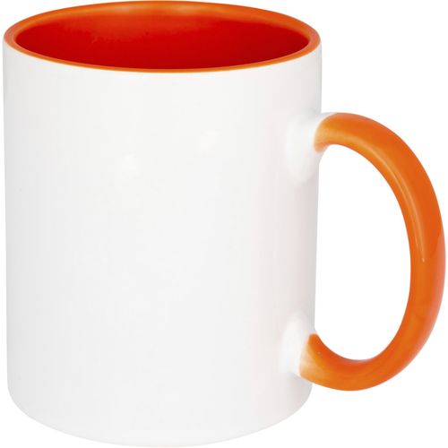 Esta caneca de cerâmica de modelo clássico tem um revestimento especial para sublimação. A caneca tem o interior colorido e a pega de cor a condizer. Conformidade em ser lavada na máquina de lavar loiça e com a norma EN12875-1 ( pode ser lavada até 125 ciclos de lavagem ) em qualquer tipo de decoração. Capacidade de 330 ml. Apresentado numa caixa branca.Cerâmica Green Points Total :20 – CO2 foot print : 0,647Sublimação – envolvente – max color : full colour – 205 x 70 mm.