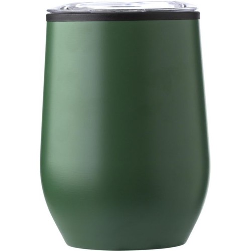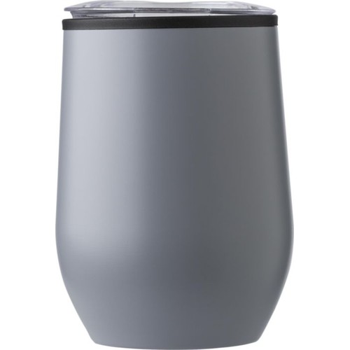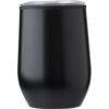 Copo de viagem em aço inoxidável (300 ml) com interior em PP e tampa em PS. O copo tem um acabamento mate. Apresentada individualmente numa caixa de cartão castanha. Colors : preto Materials : Plástico/Metal Certificates : Cadmium (nr 2), PAHs (nr 4), Phthalates (nr 13), Lead (nr 19), SVHC’s (nr 22), LFGB (nr 56), Bisphenol A (BPA) (nr 80), BSCI (nr 195).