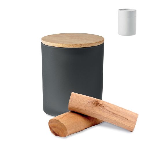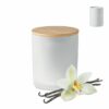 Canela, Baunilha, Sândalo ou Jasmim, vela de cera à base de plantas perfumadas em suporte de frasco de vidro fosco com tampa de bambu. 120 gr. Tempo de queima: 20 horas. Apresentado numa caixa de oferta em tubo de papel.