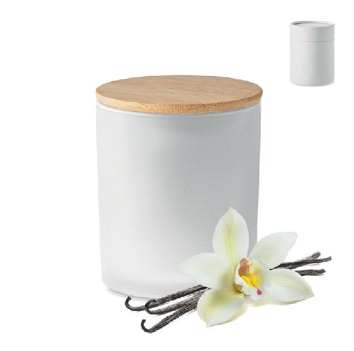 Canela, Baunilha, Sândalo ou Jasmim vela de cera perfumada à base de plantas em frasco de vidro fosco com tampa de bambu. 200 gr. Tempo de queima: 33 horas. Apresentado numa caixa de oferta em tubo de papel.