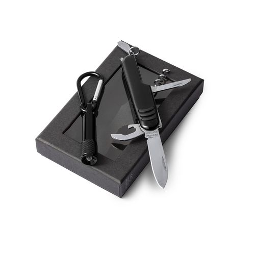 Lanterna 1 Led. Canivete 7 Funções. Pilhas Botão IncluídasComposition : Alumínio/ Aço Inoxidável.