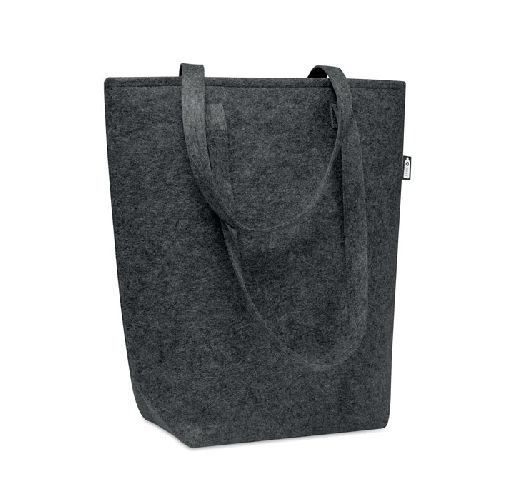 Saco de compras em feltro RPET com alças compridas e reforço no fundo.