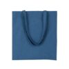 Saco sustentável, concebido a partir de algodão reciclado e poliéster reciclado. Alças compridas para usar na mão ou ao ombro. Este saco faz parte do projecto «K-Loop». Algodão reciclado/Poliéster reciclado. Saco de compras plano com alças no mesmo tecido do saco. Este saco faz parte do projecto «K-Loop». Através deste projecto, a Kimood encerra o circuito da economia circular no sentido estrito. O algodão utilizado provém dos resíduos de fabrico dos artigos em algodão da marca Kariban, da gama KARIBAN BRANDS. O poliéster adicionado tem origem na reciclagem de garrafas de plástico em PET. Ao longo do processo de reciclagem, são incorporados no fio rastreadores, filamentos em viscose e cerâmica que funcionam como impressão digital única. Os rastreadores reflectem a luz de forma única e possuem, portanto, um código inequívoco e inviolável. Graças a isto. podemos memorizar, numa cadeia de blockchain, todas as informações acerca dos processos a que o fio foi submetido de forma unívoca. Graças à tecnologia de rastreadores Aware™ e à plataforma correspondente de blockchain, a Kimood possibilita ao consumidor final seguir o processo de produção na íntegra. Isto permite garantir que o produto foi bem reciclado, utilizando os seus próprios resíduos, sem alterações possíveis durante o processo. Uma etiqueta especial com um código QR permite aceder à plataforma Aware™ e autenticar directamente os certificados com um simples smartphone.