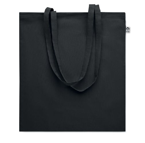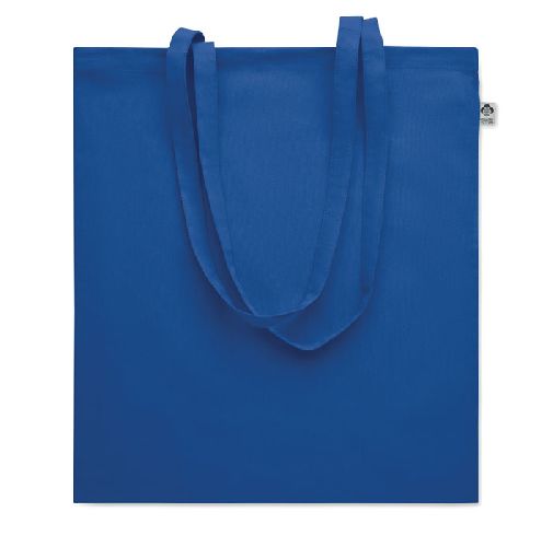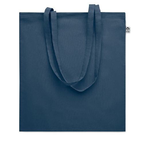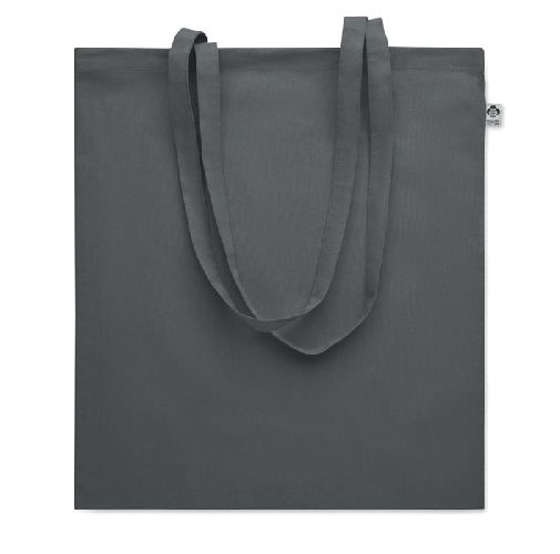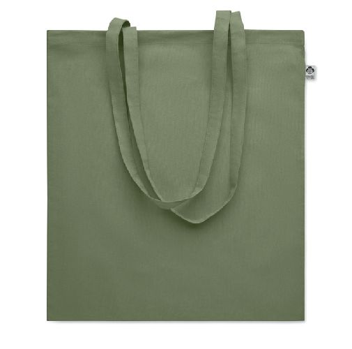 Saco de compras de algodão orgânico com asas longas. 180 gr/m². Produzido sob uma norma certificada para a utilização de substâncias nocivas nos têxteis.