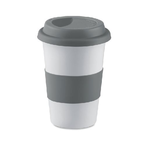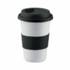 Copo de cerâmica com tampa e banda em silicone, 400 ml capacidade. Somente transfere cerâmico é apto para máquina lava-louças.