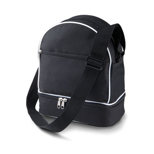 Compartimento com espuma na parte inferior do saco. Bolso frontal grande com fecho. Alça de ombro ajustável. Saco para bolas em poliéster 600D. Compartimento inferior em esponja com capacidade para 3 bolas, bolso frontal com fecho, alça de ombro ajustável.