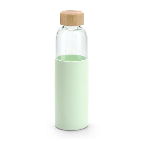 Garrafa em vidro borossilicato com tampa em bambu e revestimento com bolsa em silicone. Garrafa com capacidade até 600 mL. Fornecido em caixa de oferta. ø68 x 231 mmProperties : Apropriado para comida, Fornecido em caixa de oferta, Produto amigo do ambiente, Apropriado para bebidas frias, Apropriado para bebidas quentes, Our natureMaterials : Vidro borossilicato. BambuCertificates : Food Safety, BPA FreePacking : Polybag, Caixa branca – Repacking : Sem polybag individual, Caixa brancaDefault customisation : Garrafa desporto – Corpo superior (Tampografia – 25 x 30).