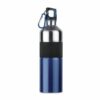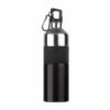 Garrafa de aço inoxidável bicolor de parede única com punho de borracha e mosquetão. Capacidade: 750 ml. O mosquetão não é para escalar (uso não profissional). Anti vazamento.