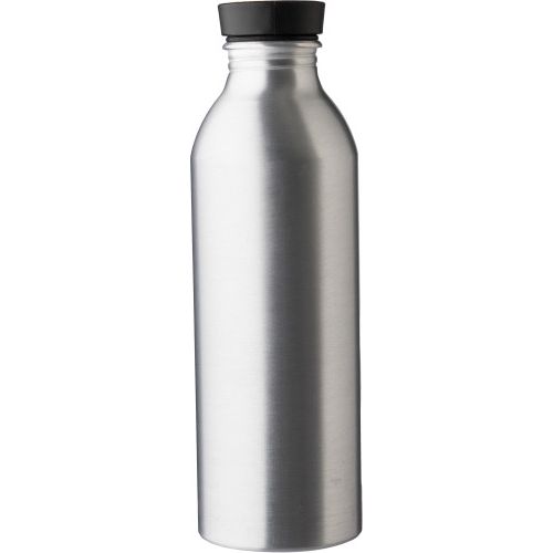 Garrafa de alumínio reciclada de parede simples (550 ml) com detalhe de bambu em cima da tampa PP. Inclui alça de transporte de silicone. Embalado individualmente em uma caixa de papelão marrom.Possui logotipo de alumínio reciclado na garrafa. Materials : PP/Silicone/Bambu/Polipropileno/Recycled aluminium.