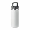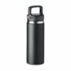 Garrafa de parede dupla isolada a vácuo em aço inoxidável com cabide na tampa. Capacidade: 500 ml.