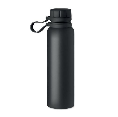 Garrafa de parede dupla isolada a vácuo em aço inoxidável com tampa de rosca e pega de silicone. Capacidade: 780 ml.