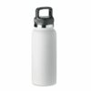 Garrafa isolada a vácuo de parede dupla de aço inoxidável com cabide na tampa. Capacidade: 970 ml.