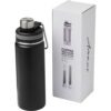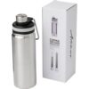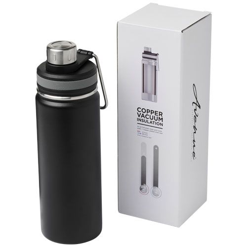 Parede dupla em aço inoxidável, e isolamento em cobre que mantém as suas bebidas quentes por 12 horas e frias por 48 horas. A sua construção também evita a formação de condensação no exterior da garrafa. Possui uma tampa de rosca na parte superior e tampa de aço inoxidável com uma alça conveniente para transportar. Construção com abertura dupla para facilitar a limpeza e o enchimento. Capacidade volumétrica de 590 ml. Apresentada numa caixa de presente “Avenue”.Aço inoxidável Green Points Total :14 – CO2 foot print : 2,452Tampografia – frontal – max color : 4 – 25 x 70 mmSerigrafia Circular: devido á rotação da máquina de impressão, a posição do artwork nem sempre é alinhada igualmente para todos os itens..