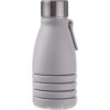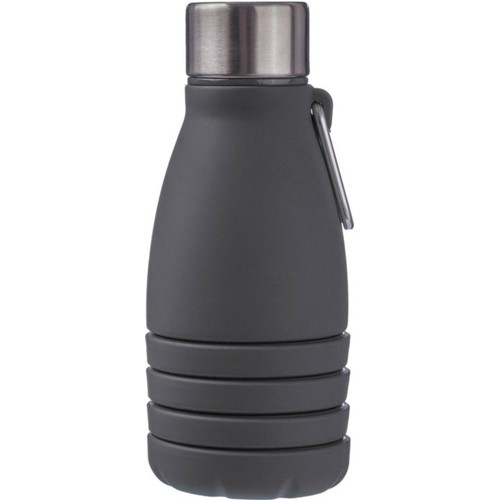 Garrafa dobrável de silicone (550 ml) com uma tampa de aço inoxidável e um mosquetão de alumínio. Tamanho dobrado: ø7×17 cm, tamanho desdobrado: ø7×25 cm. Apresentado a granel. Colors : cinzento Materials : Alumínio/PP/Aço Inoxidável 201/Silicone.