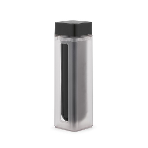 Liberte o seu espírito criativo com a nossa garrafa de plástico moldado por injeção dupla de 540ml (500ml líquidos). Com um design único de abertura e fecho, oferece possibilidades infinitas. É ecologicamente amigável e fabricada com ABS reciclado e PBT. Materials : ABS Reciclado CO2 : 1.88 Printing technique default : UV Circular.
