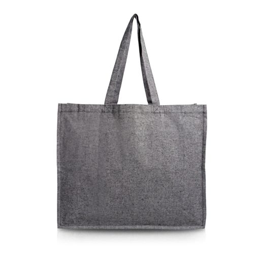 Saco em algodão reciclado 190g/m2 com fole e lateral. Este saco de algodão reciclado e boa gramagem, graças ao seu fole total de 15 cm e ao seu design e fluidez, permite que o use no seu dia-a-dia e esteja sempre preparado para qualquer compra que surja.