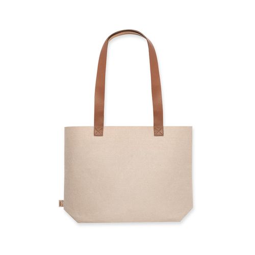Saco da linha nature fabricado em feltro RPET, com asas compridas reforçadas (70 x 3 cm) em polipel de tom castanho. De acabamento cosido e com fole na base, com corpo disponível na cor cinza e natural. Etiqueta exterior com distintivo RPET. Resistência até 6 kg de peso.O feltro RPET é fruto da combinação do processo de reciclagem de materiais plásticos junto com a técnica milenar de fabrico do feltro, dando como resultado um material de eco-tendência que, para além de ser de origem reciclado, también se converte en reciclável.Composition : Feltro RPET/ PU.