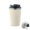Copo de parede dupla com parede exterior em PP e parede interior em aço inoxidável reciclado (90% aço inoxidável reciclado e 10% aço inoxidável) com um revestimento interior em cerâmica. Sem fugas. Capacidade: 350 ml. Dimensions : Ø8.5X14CM