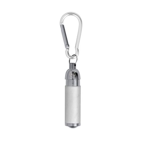 Porta-chaves lanterna com corpo em alumínio reciclado. Equipado com 1 LED de potência, funciona com pilhas de botão incluídas e possui encaixe em forma de mosquetão da mesma cor. Inclui logotipo de Alumínio Reciclado num dos lados e está disponível numa ampla gama de cores. Apresentado numa caixa de design kraft.O Alumínio Reciclado é um material com possibilidades de reciclagem quase infinitas, sem perder as suas propriedades originais e consumindo menos energia neste proceso.Certificação GRS (Global Recycled Standard / Norma de Reciclagem Global), que garante a origem reciclada do material usado para fabricar o produto.1 Led. Pilhas Botão IncluídasComposition : Alumínio Reciclado.