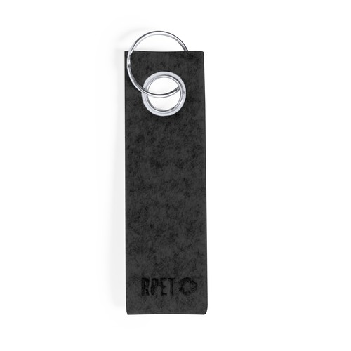 Elegante porta-chaves com alça de feltro RPET e argola metálica cromada. Com distintivo de feltro RPET na fita e argola metálica cromada.O feltro RPET é o resultado da combinação do processo de reciclagem de materiais plásticos junto com a técnica milenar de fabricação do feltro, resultando num material eco-tendência que, além de ser de origem reciclada, também se torna reciclável.Composition : Feltro RPET.