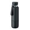 Garrafa isolada de parede dupla em aço inoxidável 90% reciclado e 10% em aço inoxidável, com pega de alça integrada e alça longa adicional (70 cm) na tampa em PP. Sem fugas. Copo inferior incluído. Capacidade: 500 ml.