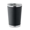 Copo de doble pared de acero inoxidable reciclado (90 % de acero inoxidable reciclado y 10 % de acero inoxidable) con funda de piel sintética extraíble. Tapa con orificio deslizante. Antifugas. Capacidad: 350 ml Dimensions : Ø8.5X12.5CM
